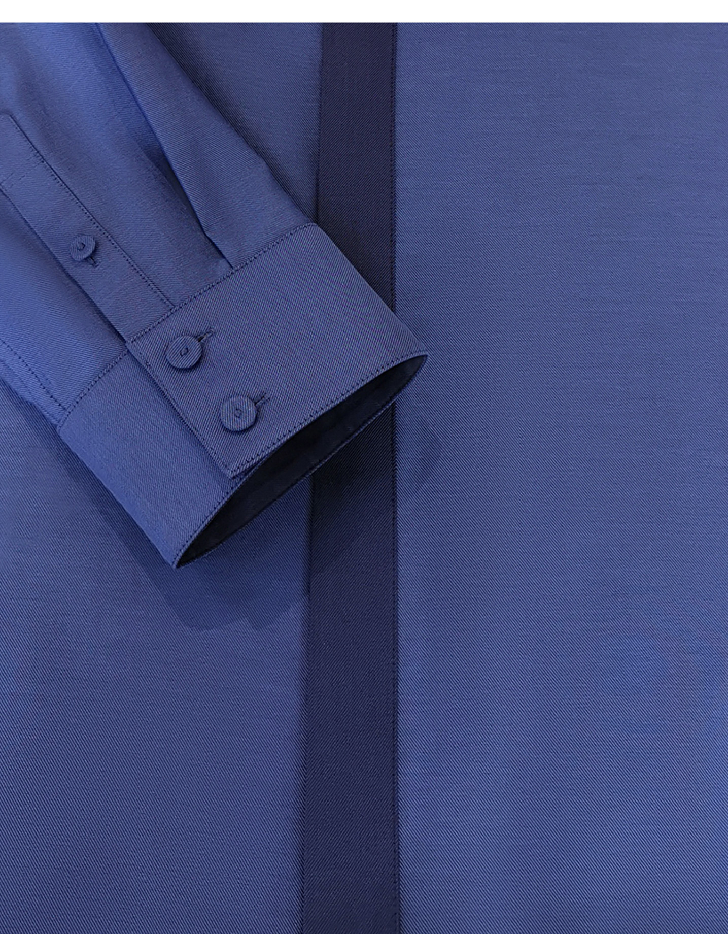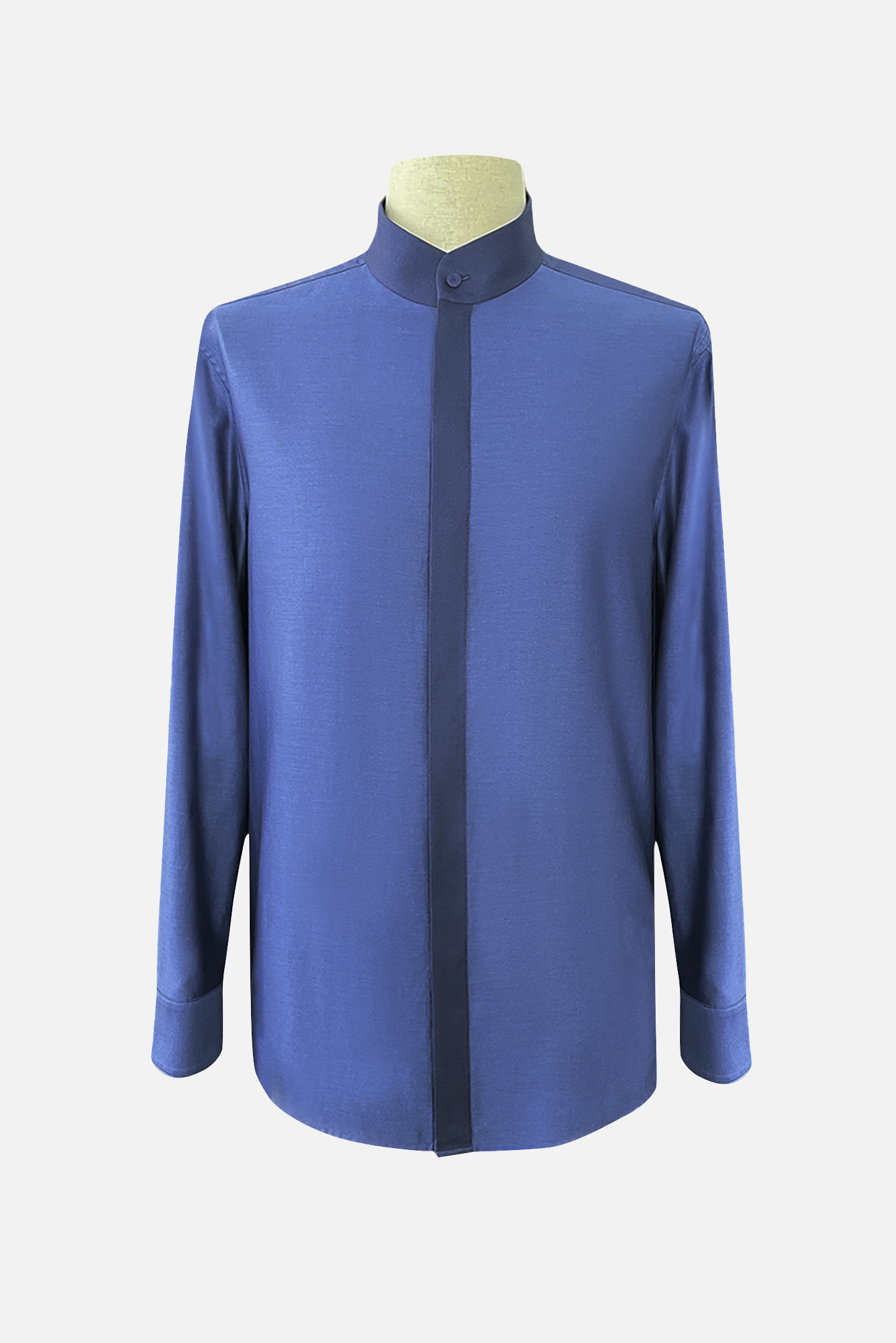 甄選瑞士Alumo純棉面料,手感綿如絲綢。疊領設計搭配一粒扣暗門襟,門襟拼接深色面料,營造視覺層次感,凸顯設計之美;袖口簡約整潔,下擺圓順自然;合體剪裁修飾身型,挺拔俊朗。