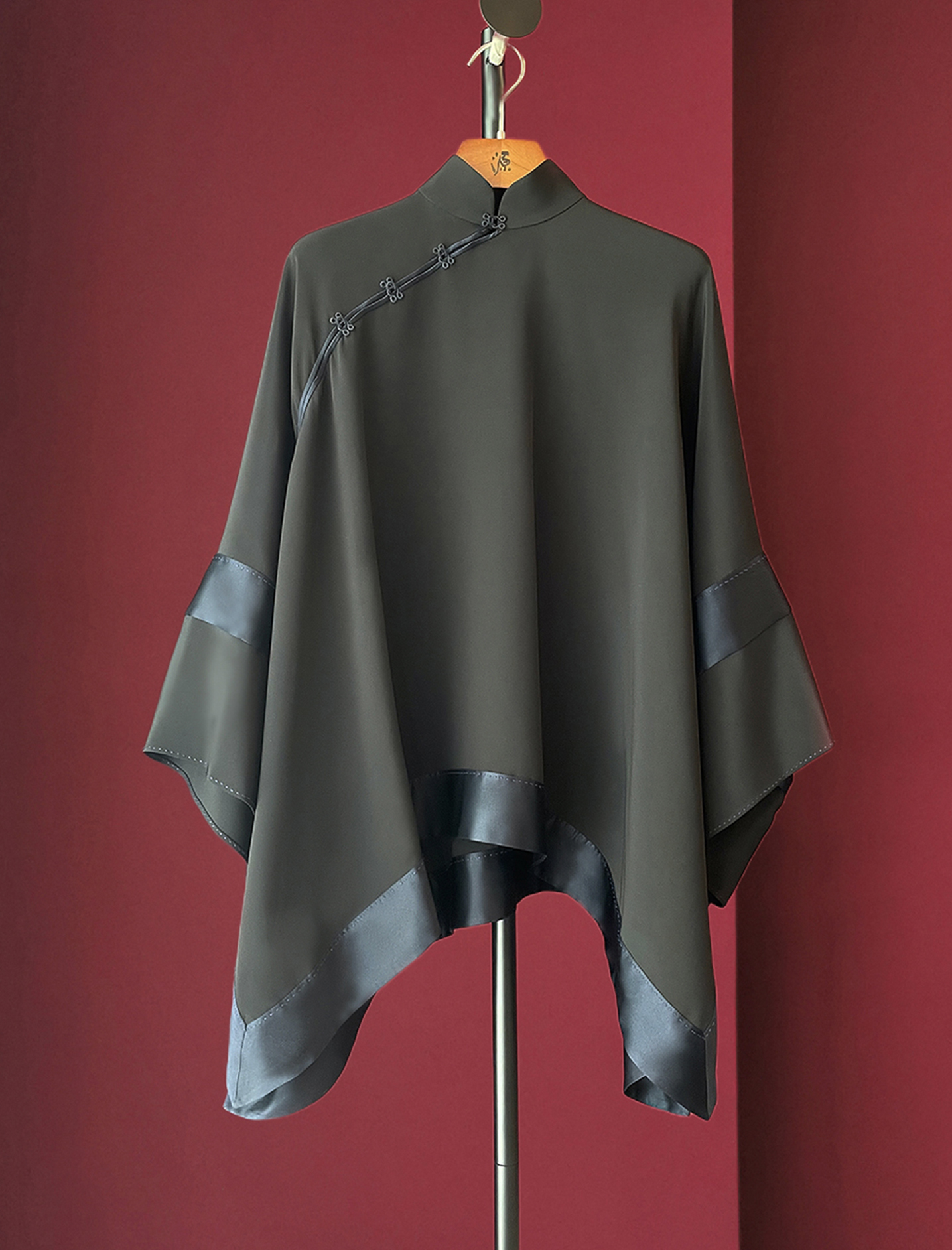 Dark green silk adds a retro flavor, traditional Chinese clothing design details in the eye-catching modern flavor.
